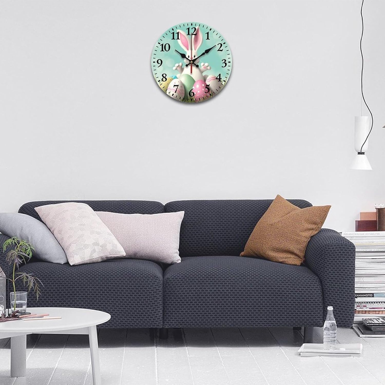 Happy Easter Eggs Bunny Tail1 Non Ticking Clock Silent Non Ticking Round Wall Clocks Battery Operated 10 inch Quiet Clock for Dining Room Home OfficeFeatuers:Non-Ticking silent Living Room Wall Clock, provide a quite environment for you Clear and easy to read wall clock, clock printed with clear number, can be easy to read, even from sideEasy use Bedroom Wall Clock, it comes with a hook, wide slot in back for easy hanging, you can hang it on the wall or put it on the tabletopWall Clock for Living Room battery operated, powered by 1 AA battery(Not included), for longer life please use ordinary carbon batteryWall Decoration Clock, great for bedroom, living room, classroom, bathroom, kitchen, office, dining room, meeting room, cafe shop, or any wall of any colorPerfect gift Bedroom Clock, ideal gift for kids, familes and anyone you love when Hallowenn, Thanksgiving, Christmas, Hannukkah, New Year, Valentine's Day, Easter, Mother's Day, Father's Day or BithdayProduct Description:Wall Clock Size: 10 inShape: RoundMaterial:PVC boardPacking: 1x Round Wall Clock, 1x hook, Not include battery, please notes!Notes:Due to manual measurement, please allow 1-2 cm errorDue to diffierent monitor resolution, please allow a slight colour errorCustomer Service:If you have any question about this wall clock, please contyact with us ASAP, we will give you a satisfied answer with 24 hours!!