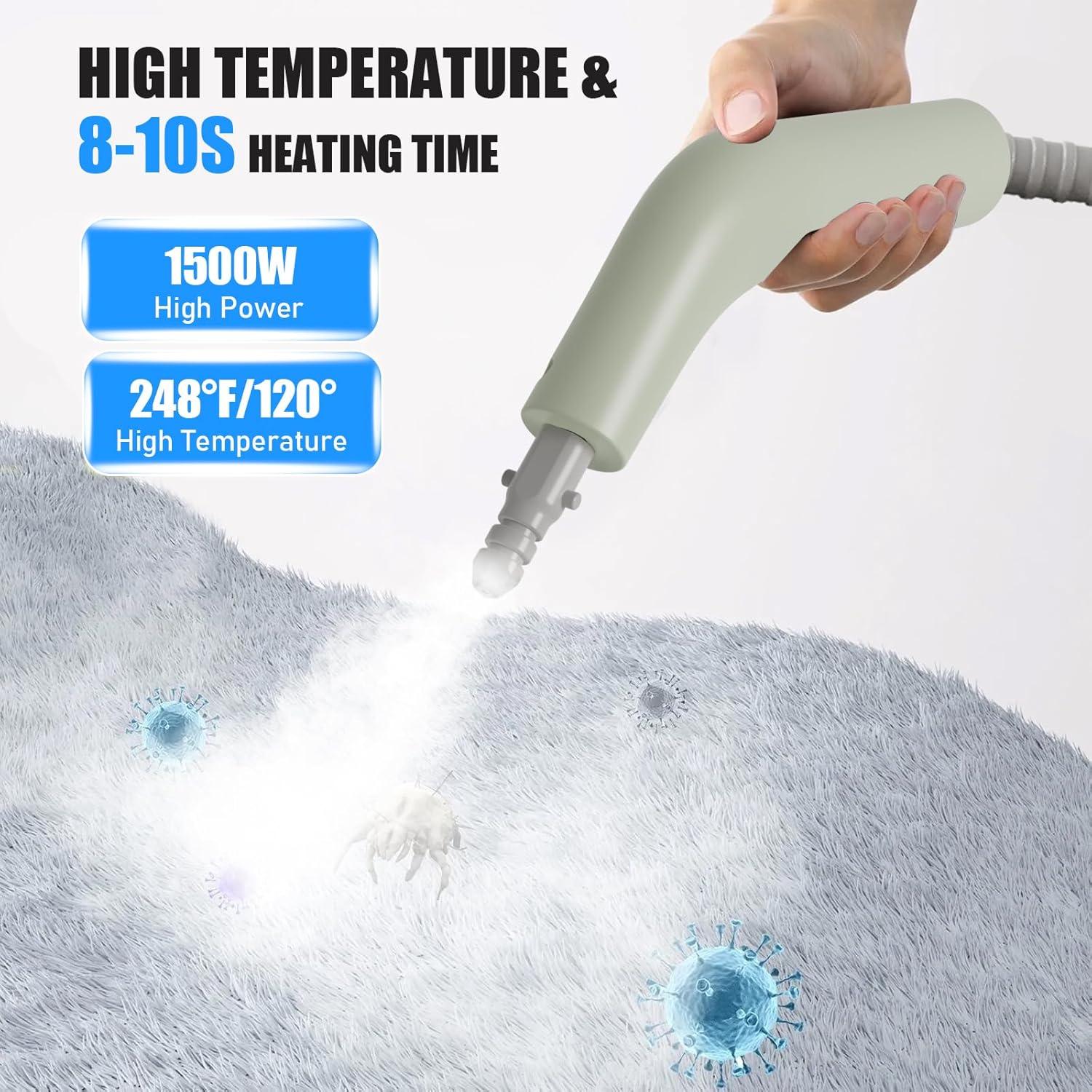 Experience Deep, Chemical-Free Cleaning Power! Unlock a healthier, spotless home with our Powerful 1500W Handheld Steam Cleaner. This versatile cleaning powerhouse generates 248°F (120°C) high-pressure steam in just 10 seconds, effortlessly dissolving stubborn grease, grime, dirt, and stains on a wide range of surfaces – all without harsh chemicals!