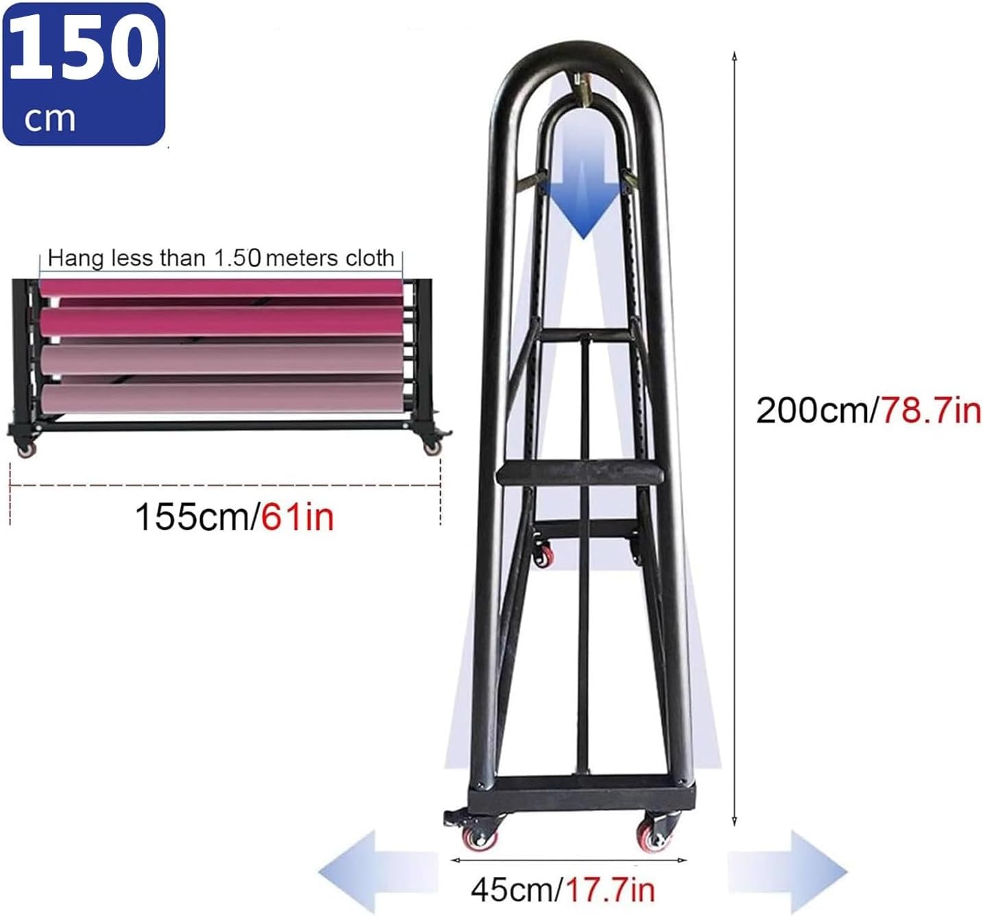 Heavy-duty wall-mounted storage rack system designed for organizing and storing vinyl films and fabric rolls. This versatile rack is also a great solution for organizing your belongings, providing you th an efficient organization and storage system. Experience the convenience and efficiency of our heavy-duty wall-mounted storage rack system. Organize your vinyl packaging, fabric rolls, and crafting accessories to easily create a neat and productive workspace.Product Features:- Easy to clean : pe th wet cloth to remove dirt.- Detachable hanging rod makes it easy to hang and use items.- Adjustable design makes it easy to adjust the distance to suit the storage of items.- It occupies little space while maximum the convenience in household organization.- The 360° rotatable wheels can be moved anywhere, making it easy to reset the space while making cleaning and hygiene simple.Product Name: storage RackProduct material: Metal FrameColor: BlackWhether to assemble: yesFeatures: Snap-on design, the spacing can be adjusted.Furniture structure: bracket structure.Scope of application: shopping malls, supermarkets, warehouses, garages, car beauty shops,Package Includes: Scarves Holder x 1Description:- Product size pure manual measurement, the error in 1-2cm, the specific subject to prevail.- It's can't avoidable that you ll receive the backpack th some smells from original material as it's brand new. The smell ll be gone if place the backpack in freely circulating air for 2-5 days.