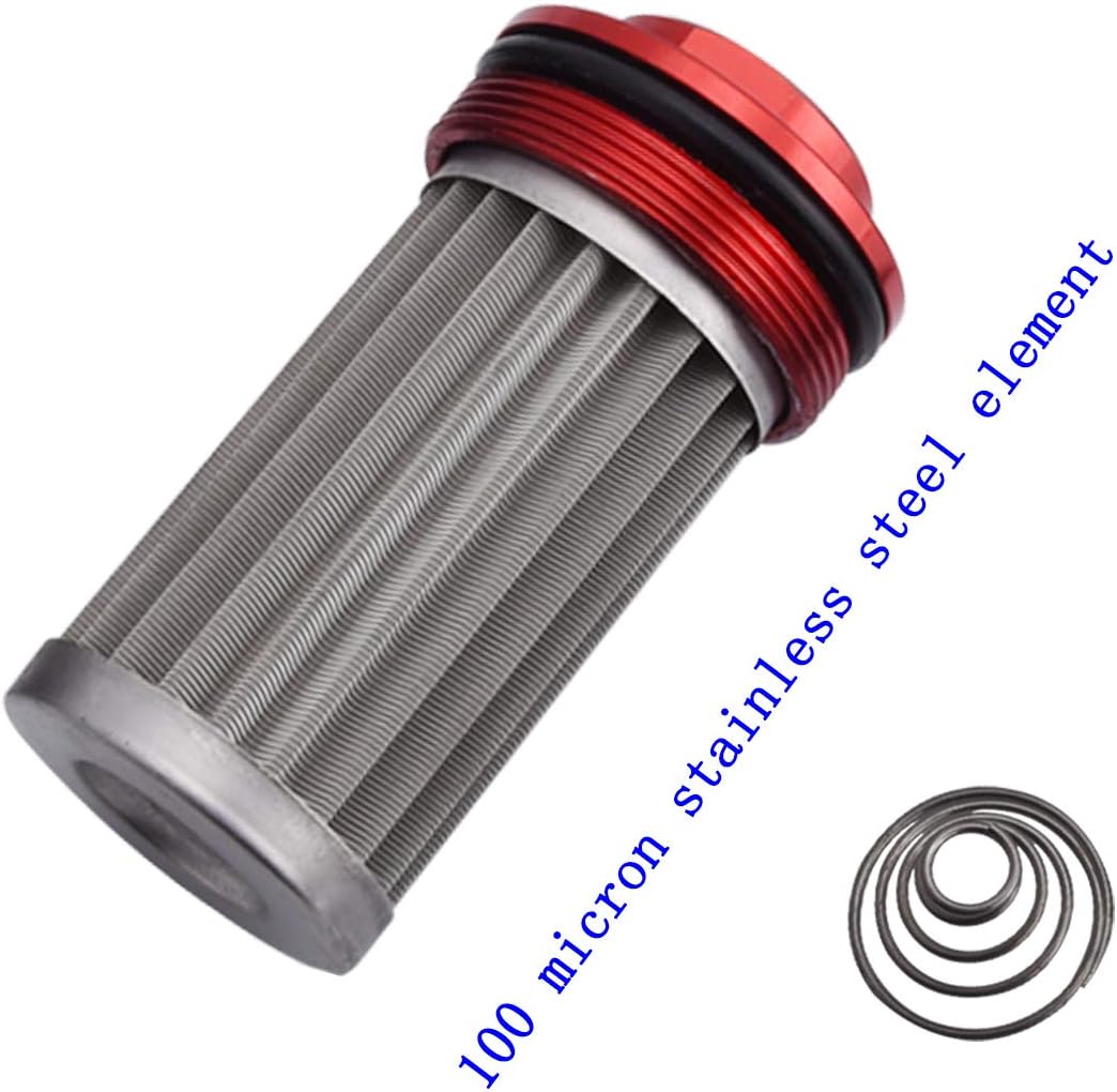 Uses aluminum alloy to make the filter housing, it has high wear resistance and corrosion resistance. The material of filter element is 304 stainless steel, it has excellent corrosion resistance, can be used with E85 ethanol fuel, gasoline, diesel, and bio-diesel. And this 100-micron filter will help you clean the dirt, rust, scale, and other contaminants.The 1/2 inline fuel filter inline fuel filter collocation 8AN push on fittings, can use them directly with your 8an fuel hose. This will save you a lot of time and money. prepared the mounting bracket for you, and it makes your installation easier. We use aluminum alloy and rubbers, for a corrosion resistant, durable and sturdy.Specification: Material: Aluminum Main Color: Black Filter Diameter: 50mm/1.9in Filter Length: 107mm/4.2in Filter Element Diameter: 40mm/1.5inPackage Included: 1 pc inline fuel filter with 100 micron stainless steel element 2 pcs o-ring seals 2 pcs 3/4-16UNF to 8an bulkhead fitting adapter with rubber seal 2 pcs 8an push lock fitting 4 pcs adjustable hose clamps 1 Pc fuel pump filter bracketNote: 1. Professional installation is highly recommended.(No installation instruction included) 2. Please allow 0.5-1 inch difference due to manual measurement. (1 inch=2.54cm) 3. The color of the actual items may slightly different from the listing images due to different computer screen, thanks for your understanding.