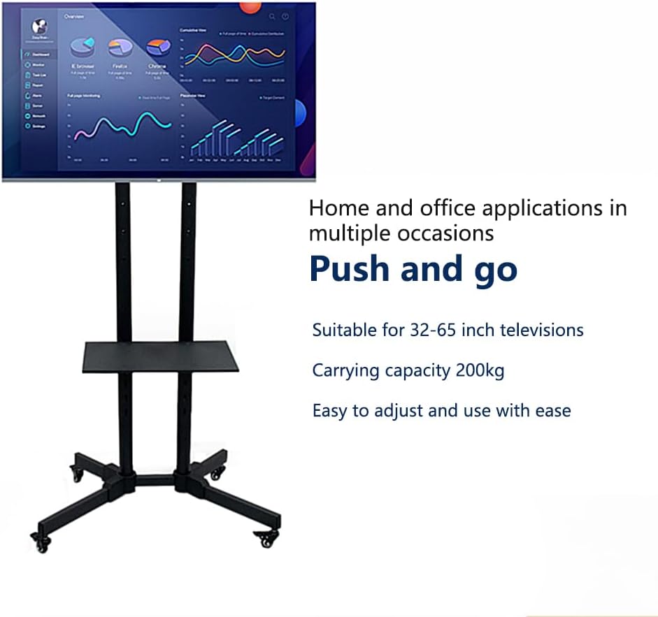 Introducing the AV Cart & Stand - the perfect addition to any home or office! Our high-quality, adjustable cart can hold a variety of devices, including LCD TVs up to 1500 inches and all-in-one computers. With its adjustable height and easy maneuverability, this cart is perfect for any situation. Whether you're using it for presentations in the office, movie nights with the family, or gaming with friends, our AV cart will meet all of your needs. One of the key features of our AV cart is its adjustable height, which allows you to customize it to your specific needs. You can easily adjust the height of the cart to accommodate your TV or computer, making it the perfect solution for all your AV needs. Another great feature is the easy mobility of the cart. With its rubber caster wheels, it can easily be moved from room to room or taken to different locations. This makes it perfect for education environments, trade shows, or even outdoor events. Our AV cart is also designed for ease of use. You can assemble it quickly and easily, without any specialized tools or knowledge. With its simple design, you can even adjust the height and move the cart around while your TV or computer are still on it. With its ability to be used as a push-cart, you can easily move your presentation setup to wherever it is needed. In summary, the AV Cart & Stand with its adjustable height, mobility, and ease of use makes it a versatile product that can be used in many different situations. It is perfect for homes, offices, classrooms, trade shows, and anywhere else you need to present or move a TV or all-in-one computer. So don't wait - order yours today and start enjoying the convenience and ease of our top-quality AV Cart & Stand!