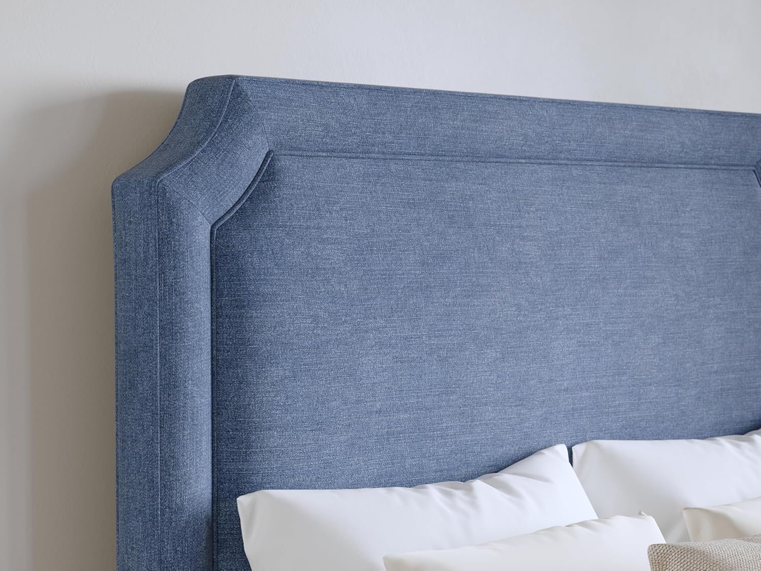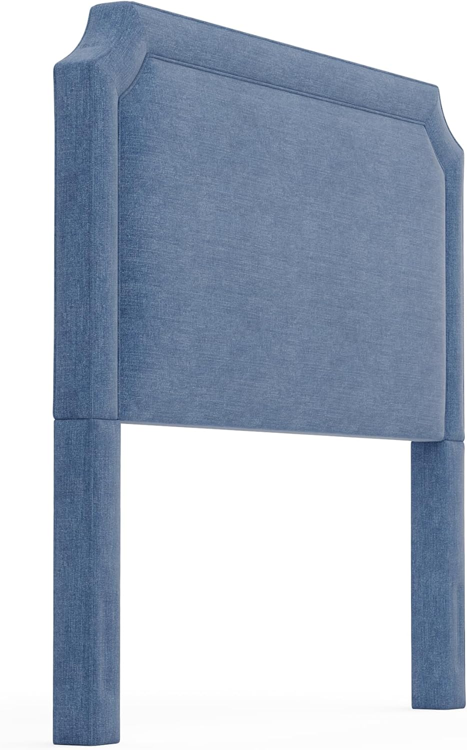 This upholstered headboard is hand-crafted in the USA and constructed with an all-wood frame. The upholstered headboards work with any standard bed frame and come easy to assemble; simply attach the legs. A Belgrave shape with inset welting adds to the impact of this piece. A timeless shape with updated details and fabrics creates the perfect update for any bedroom.