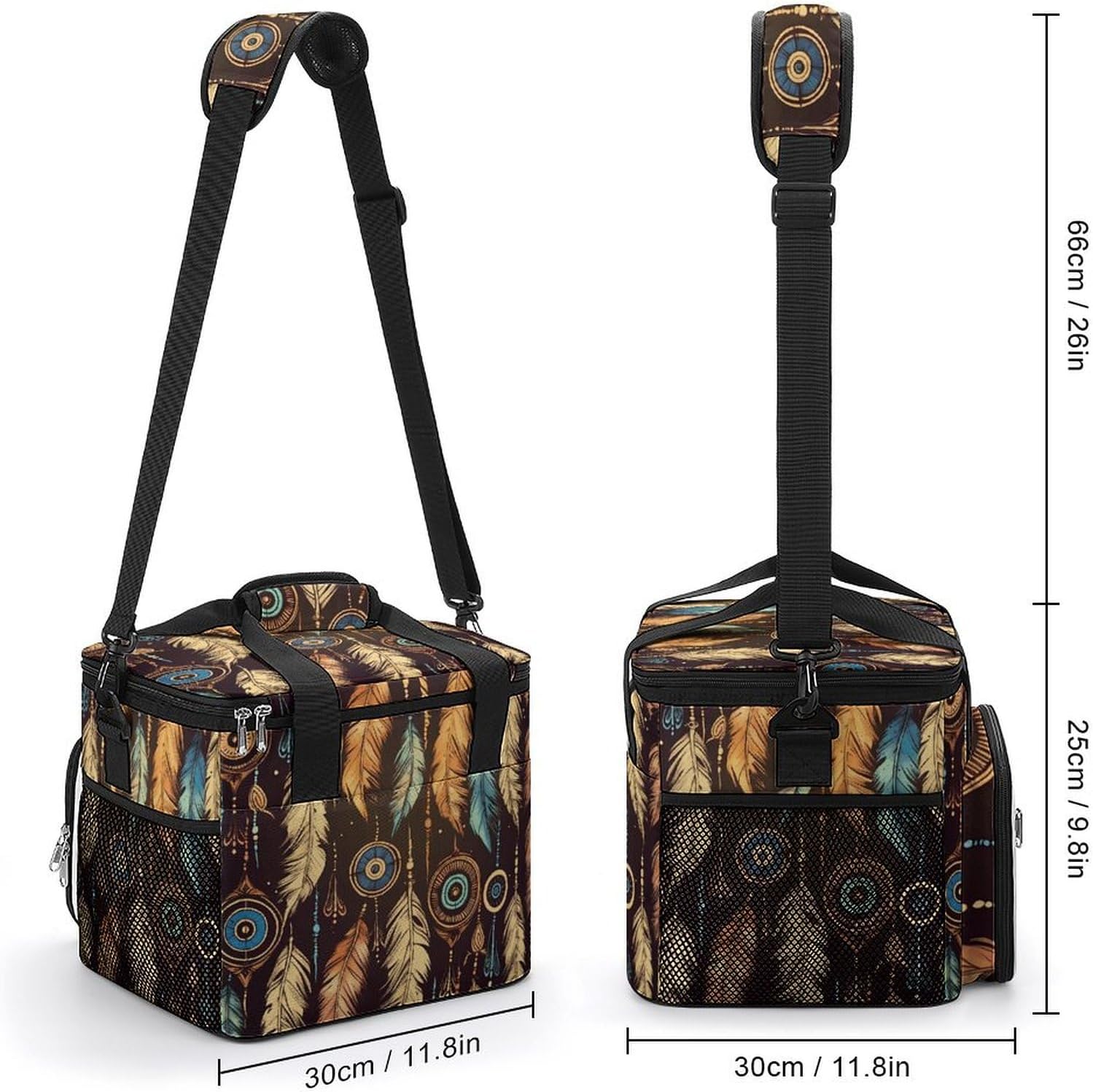Versatile design: The Vintage Ethnic Tribal Feather print travel cooler bag stylish, gender-neutral design is suitable for all ages and occasions, whether for work, gym, outdoor events, or travel.Perfect for every occasion: This insulated food bag is not just for camping, rugged cooler bag is an excellent choice for everyday use, such as meal prep, lunch at work, grocery shopping, and more.Space-Saving design: The stand-up structure of the outdoor lifestyle bag saves space and makes it easy to store when not in use, insulated grocery bag perfect for compact packing.Machine washable: The reusable lunch bag is easy to maintain, food organizer bag is washable, but avoid prolonged soaking or bleaching to preserve its quality.