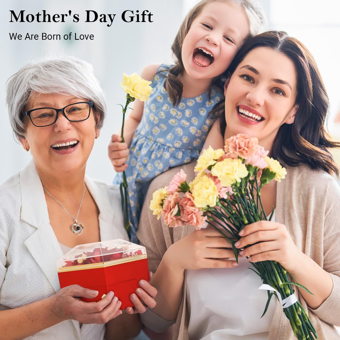Emibele Preserved Real Red Rose Heart Shaped Box with I Love You Necklace 100 Languages and Heart Shaped Jewelry Tray Dish