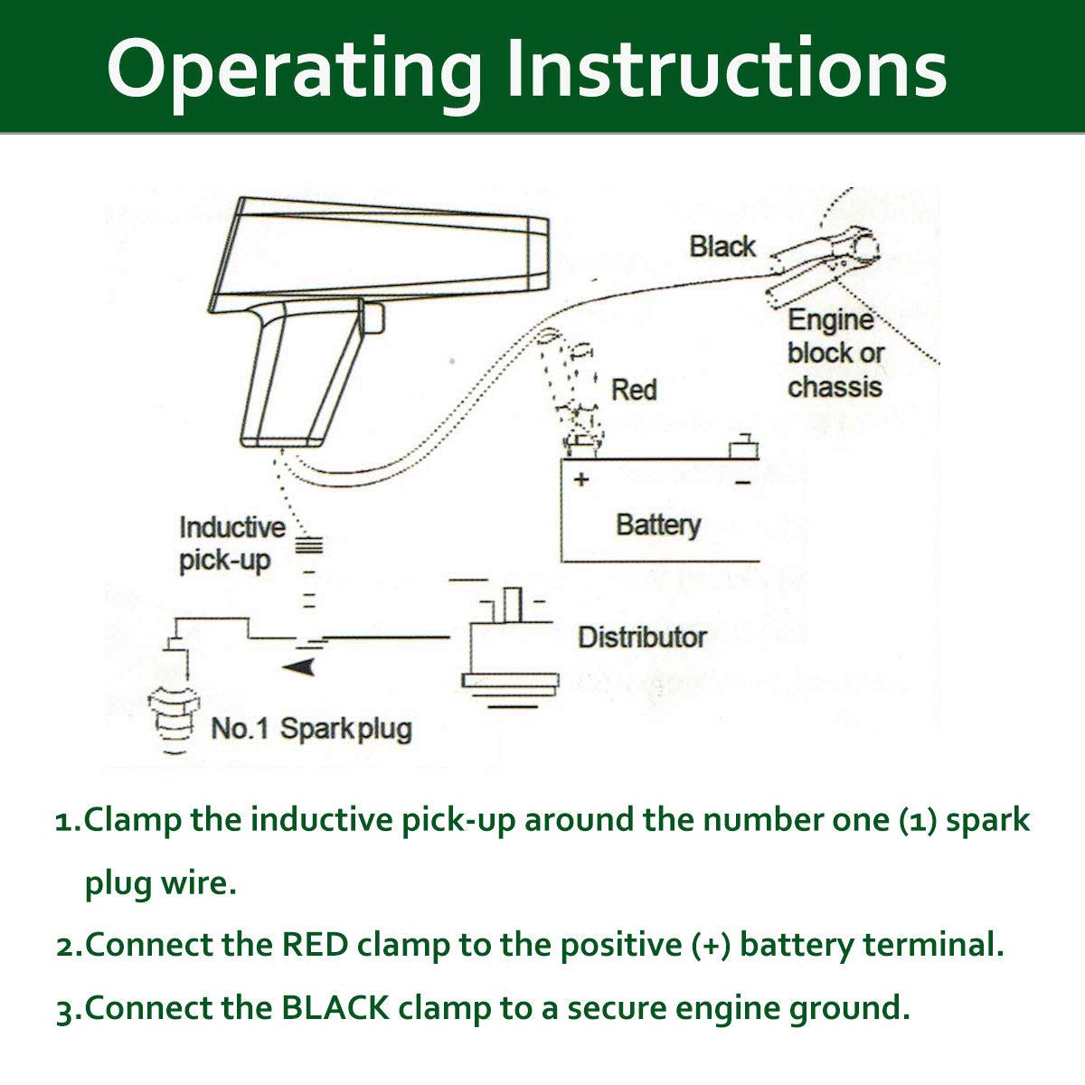 Specification:Product Name: Xenon Timing LightCB-100Input Voltage: 12VSpeed Accuracy: Up to 8,000 RPMWorking Temperature: 0-40°CMaterial: PlasticColor: RedPistol Grip Handle Dimensions: 95 x 50 x 25 mm / 3.74 x 1.97 x 0.98 in (L x W x H)Inductive Clamp Dimensions: 10 x 3.5 x 2 cm / 3.93 x 1.38 x 0.79 in (L x W x H)Inductive Clamp Cable Length: 110 cm / 3.6 ftSensor Clips Cable Length: 110 cm / 3.6 ftNet Weight: 455 g / 16.05 ozFitment:Fit for CarsFit for MotorcyclesFit for Marine EnginesFit for Two-Stroke and Four-Stroke Gasoline EnginesPackage Included:1 × Timing Light