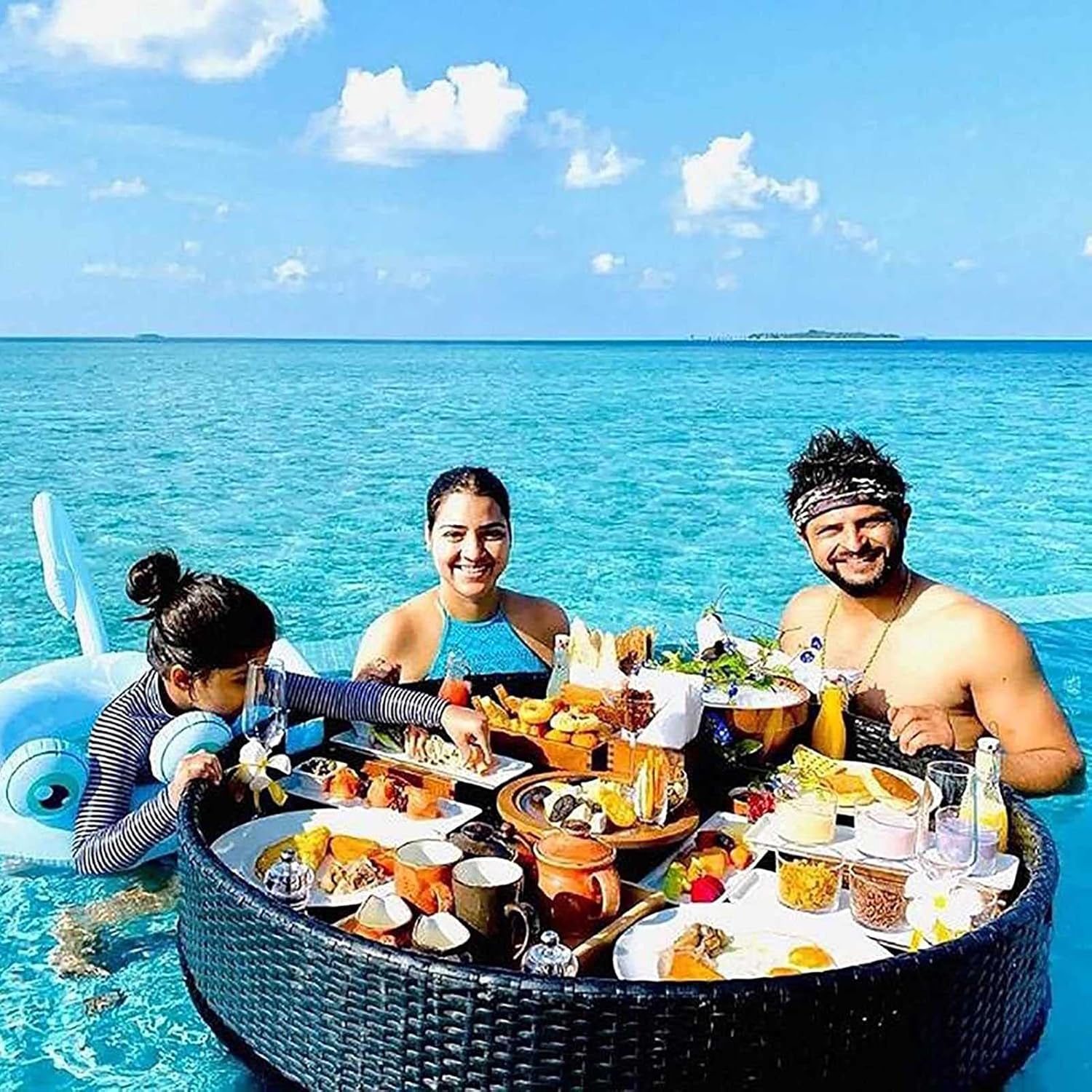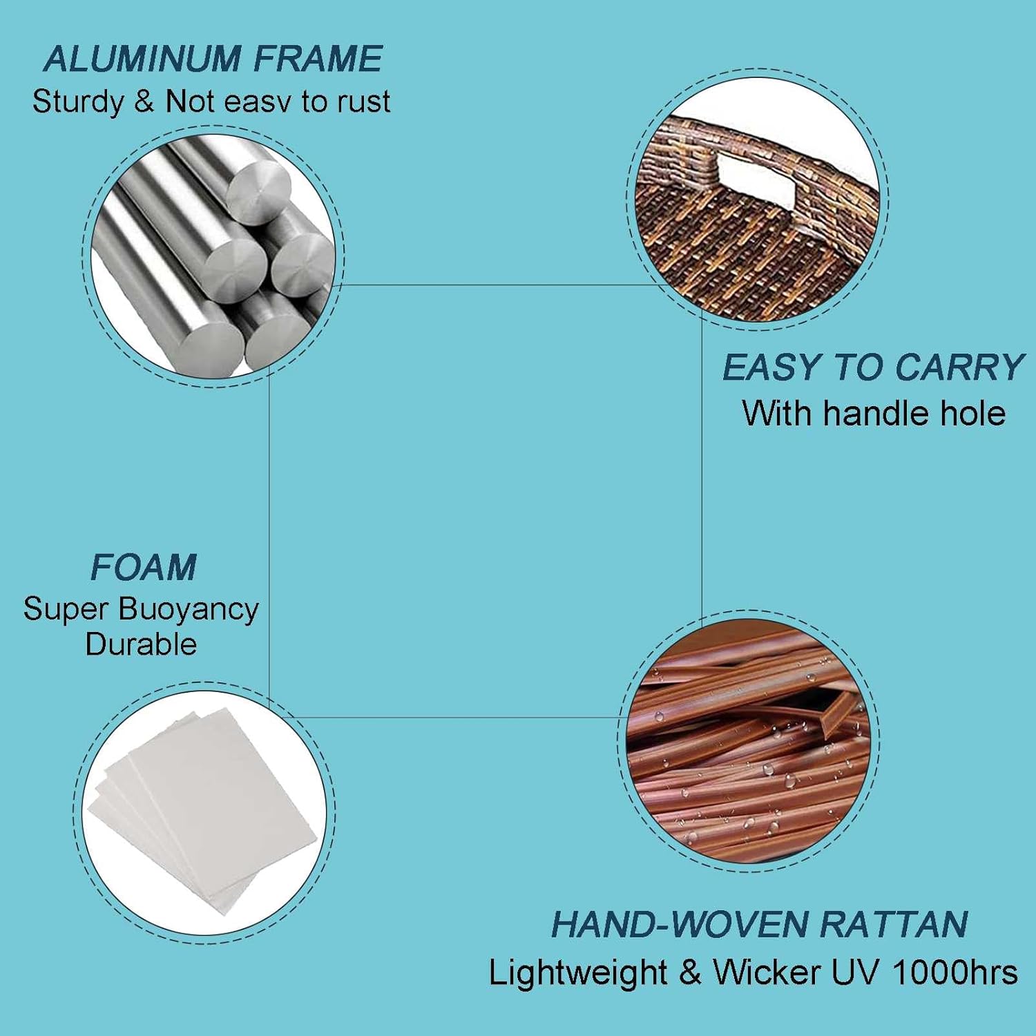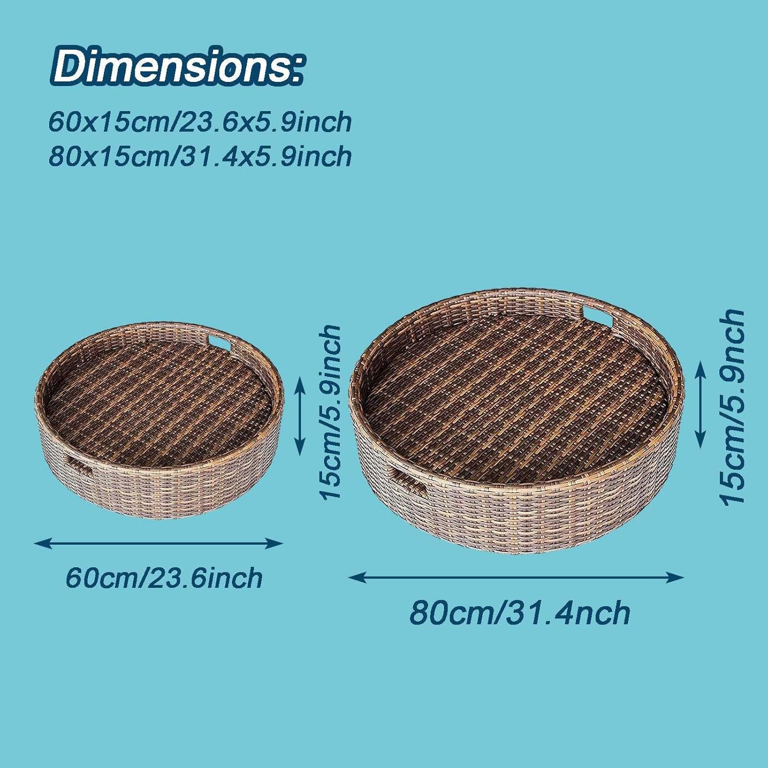 💗 Resort Living in Your Own BackyardStand out with your next pool party with a luxury floating tray. Bring breakfast, brunch, lunch, dinner, platters, or drinks to your guests while they lounge around in the pool. Float our Champagne, strawberries, and a ring box to your loved one!💗 Specification:Name: Pool Floating TrayMaterial: High quality PE rattan, aluminum alloy, waterproof fabricDimensions:60 x 60 x 15 cm (23.6 x 23.6 x 5.9 inch)80 x 80 x 15 cm (31.4 x 31.4 x 5.9 inch)Product use: daily dinner, pool party, wedding video cameraFrame Durability: Weather Resistant; Waterproof; UV resistant; Rust resistantProduct Care: Clean with warm soapy water💗 Feature:Custom hand woven PE (polyethylene) wicker for all seasonsSturdy, rust-resistant powder-coated aluminum frame for maximum durabilityPerfect for outdoor use in all climatesReady for use and enjoymentComes fully assembled💗 NOTE:◆Only the product itself is sold, not including other decorations.◆Manual measurement, product size may have an error of 1-2cm.
