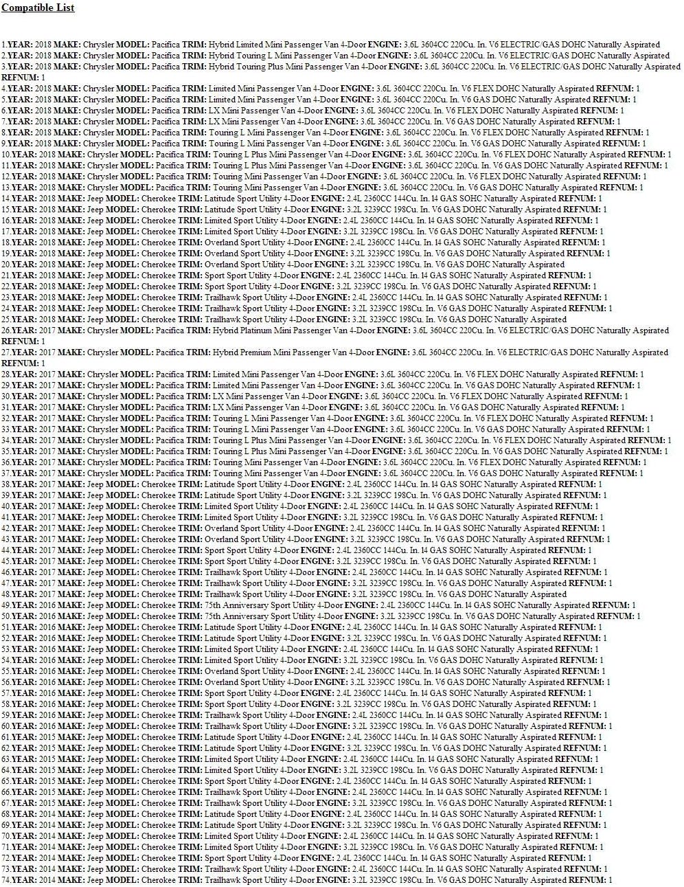 | Manufacturer Part Number | 68197110AA |