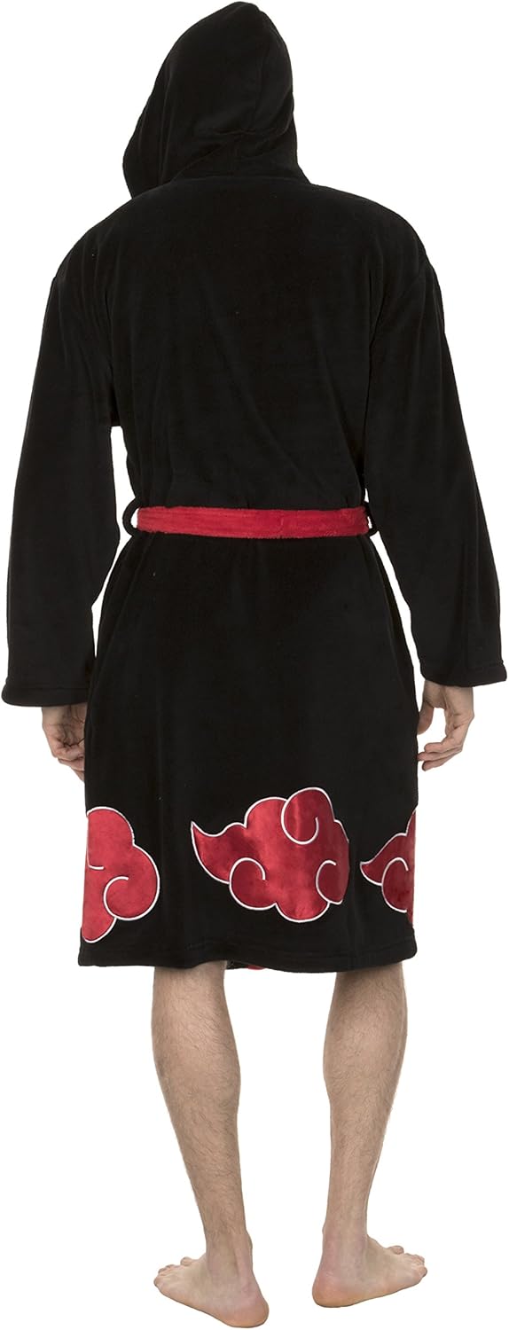 Naruto Shippuden Akatsuki Anti Leaf Clouds Symbol Anime Cosplay Costume Hooded Fleece Pajamas Bathrobe Black