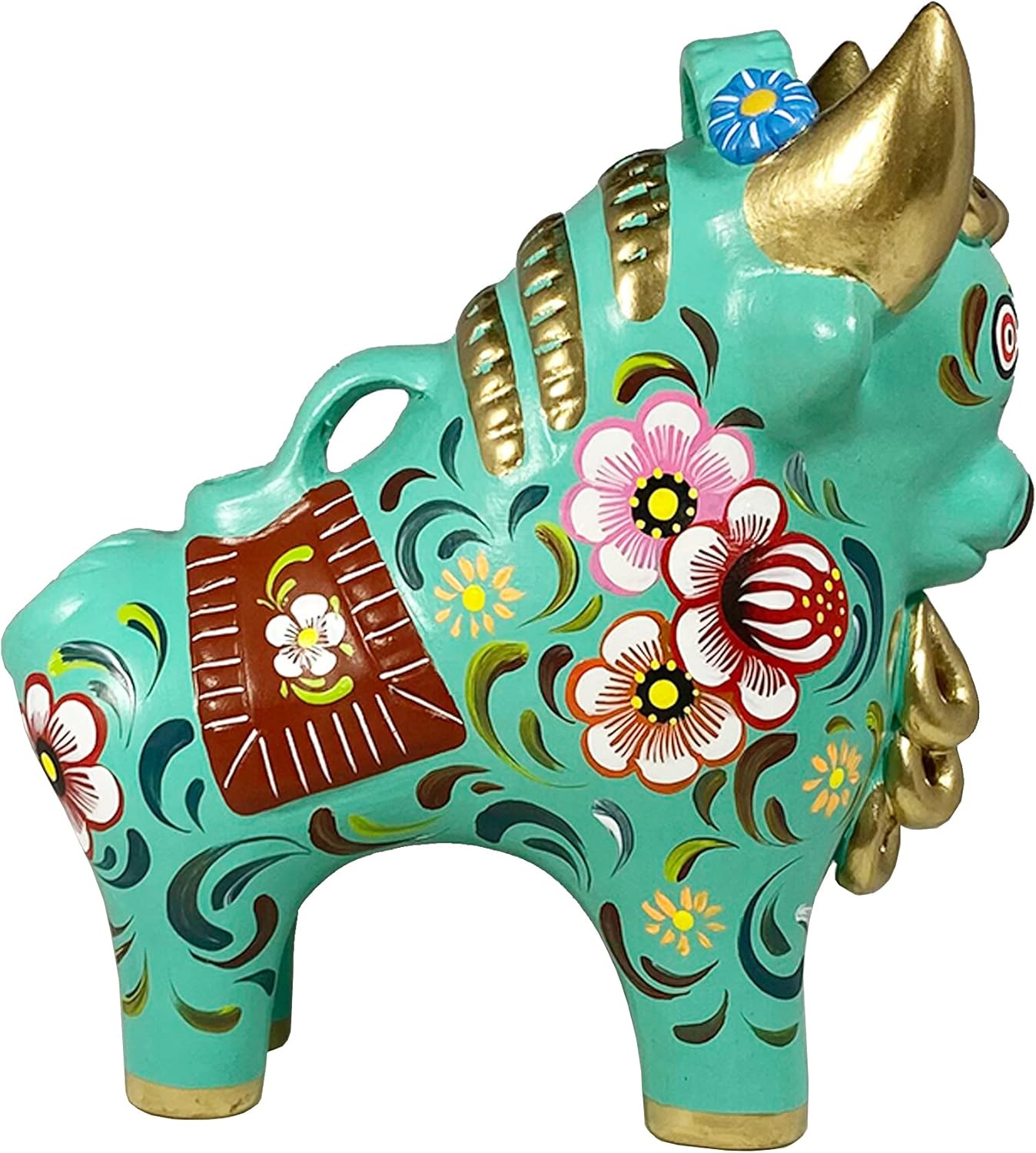 The Bull of Pucará is a tradition and expression of the Peruvian cultural heritage, symbolizing happines and prosperity. It is made of clay, and handpainted by artisans of the Peruvian Andes. It is normally placed at the houses' ceillings to protect and strengthen the families. Let this bull protect your family, enhance your decor and assure happines and prosperity all the year. Measures: 19.5 x 9.5 x 20 cm | 7.7" x 3.7" x 7.9" Measure of the Packing: 26 x 15 x 26.5 cm | 10.2" x 5.9" x 10.4" Weight of the Parcel: 1.5 kg | 3.3 pounds Handpainted ceramic