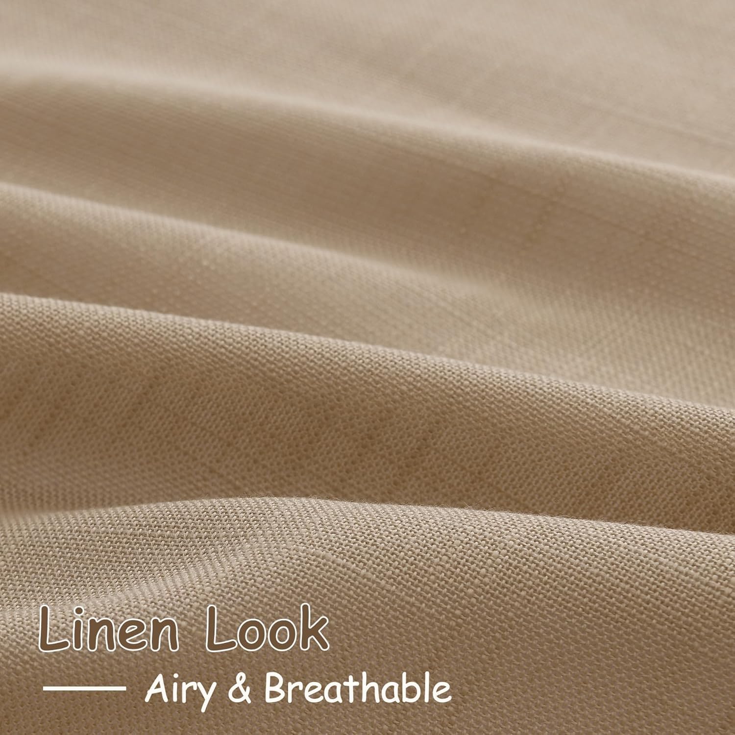 2 Panels Tan Linen Curtains 102 inches LongLinen blend curtains have a distinctive texture that creates a warm and inviting atmosphere in a room. This texture also adds a touch of elegance and sophistication to any decor, making them a versatile and stylishApplicable Occasions: These Tan linen curtains are suitable for a wide range of occasions, including home decoration, window treatments, and privacy protection. They are perfect for use in bedrooms, living rooms, dining rooms, and other areas of the home where a touch of elegance and privacy is desired. Their neutral color and classic design make them a versatile choice that can be used in any decor style.