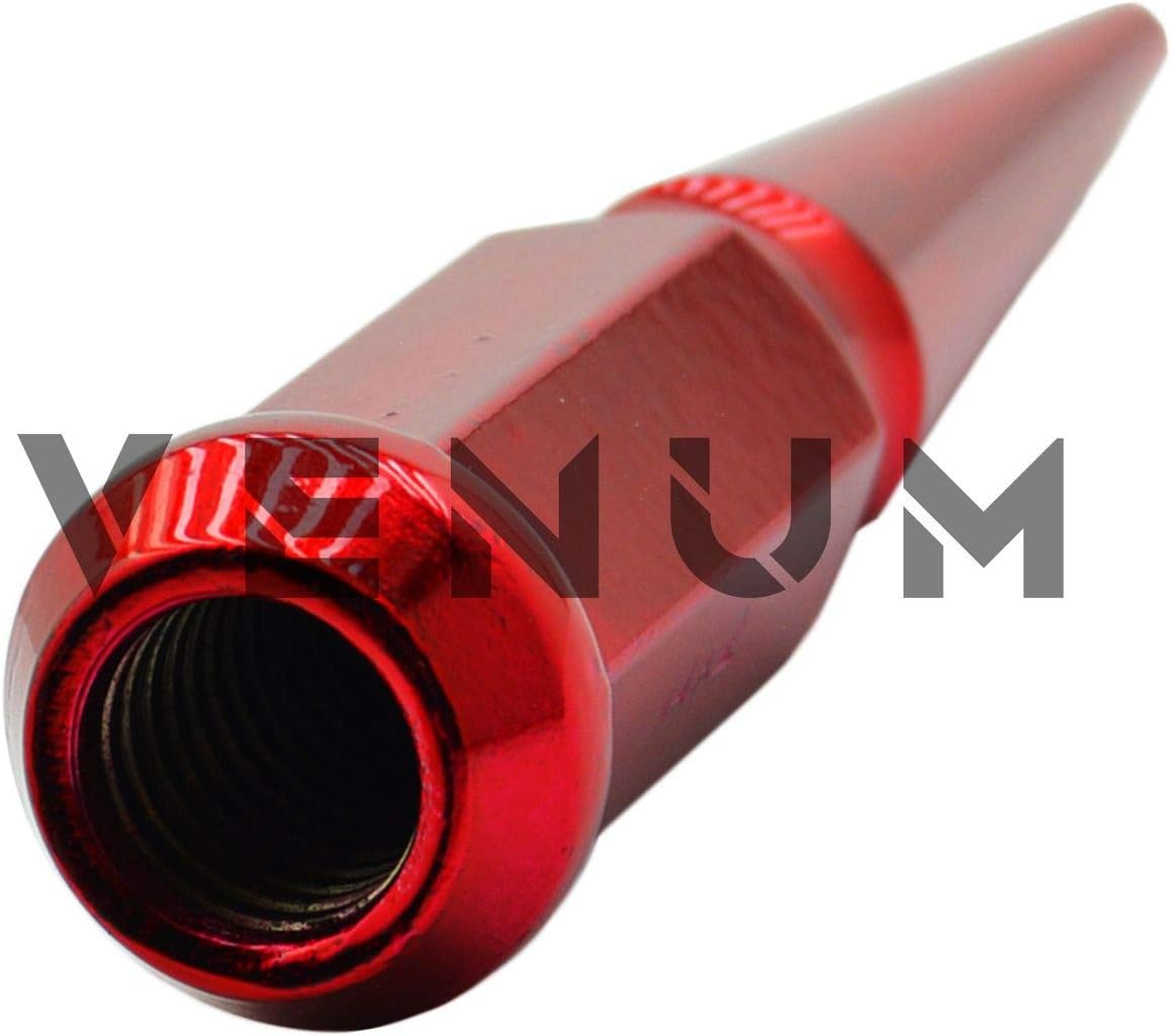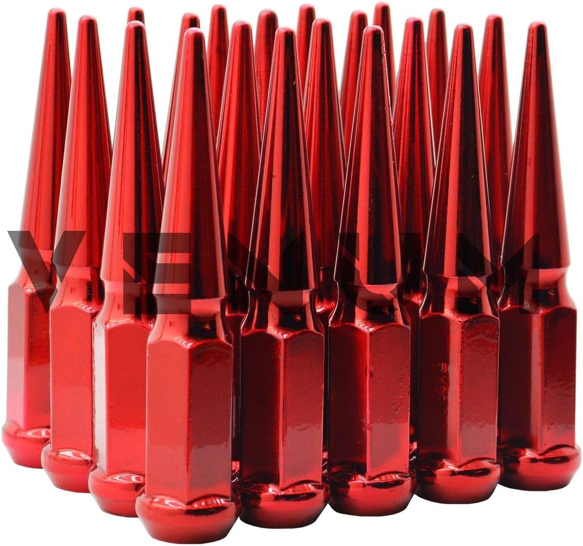 [ PRODUCT DESCRIPTION ] New 32 Pc Set of Candy Red "SOLID SPIKE Steel Lug Nuts. Fits all 14x1.5 vehicles with aftermarket wheels & conical seating. These lug nuts are not cheap ordinary lug nuts. Our lug nuts are powdercoated and made in house. We can customize any lug nut to any color. Spike Lug nuts are THE HOTTEST aftermarket lug nuts in the market. Made out of 10.9 Grade Steel, 1 Piece construction. These lug nuts require a special socket to install/remove them. At the same time it adds security to your wheels. Special key is included. [ COMPATIBLE WITH ] All Years Avalanche 1988-2000 C-2500 1988-2000 C-3500 1988-2000 K-2500 1988-2000 K-3500 1988-2019 Express Van 2500 1988-2019 Express Van 3500 1999-2019 Silverado 2500 HD 1999-2019 Silverado 3500 HD SRW & Dually 1999-2014 Suburban 2500 2003-2009 H2 2003-2005 Excursion 2003-2016 F-250 2003-2016 F-350 SRW & Dually 1988-2000 C-2500 1988-2000 K-3500 1988-2000 C-3500 1988-2000 K-2500 1999-2019 Savana 2500/3500 1999-2019 Sierra 2500 HD 1999-2019 Sierra 3500 HD SRW & Dually 2000-2019 Yukon XL 2500 & MORE [ IMPORTANT NOTES ] - Perfect For Aftermarket wheels - Will Work With Some Factory Wheels With Conical Seating Lug Holes (310) 763-0028