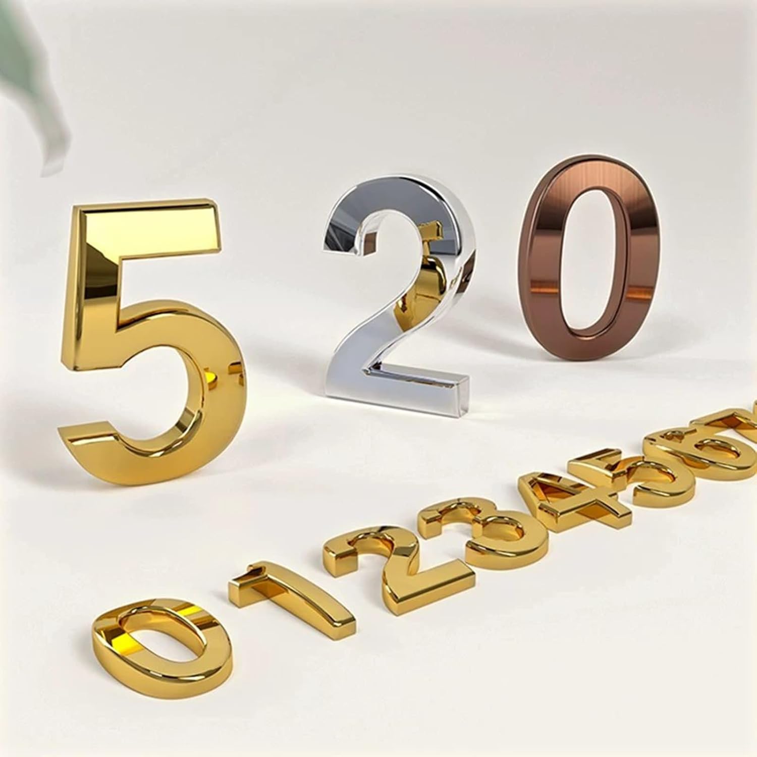 Brand: Giftparizon Product Name: House Numbers Color: Gold/Silver/Copper(Due to lighting and camera reasons, the color of the image may be slightly different) Purpose: Decor High-concerned chemical: None Usage scenarios: Indoor/ Outdoor Number of Pieces: 1 Piece Product Dimensions: 1.38" 2" 2.76" 3.94"Inch/3.5CM , 5CM , 7CM , 10CM(Manual measurement may have slight errors) Applications: mailboxes/ cars/ door/ window/ sign/ House/ Apartments/ Office