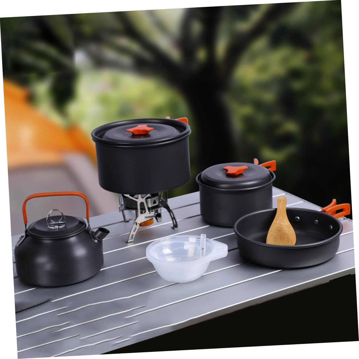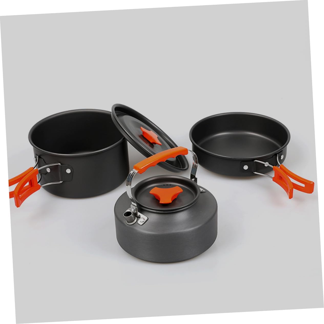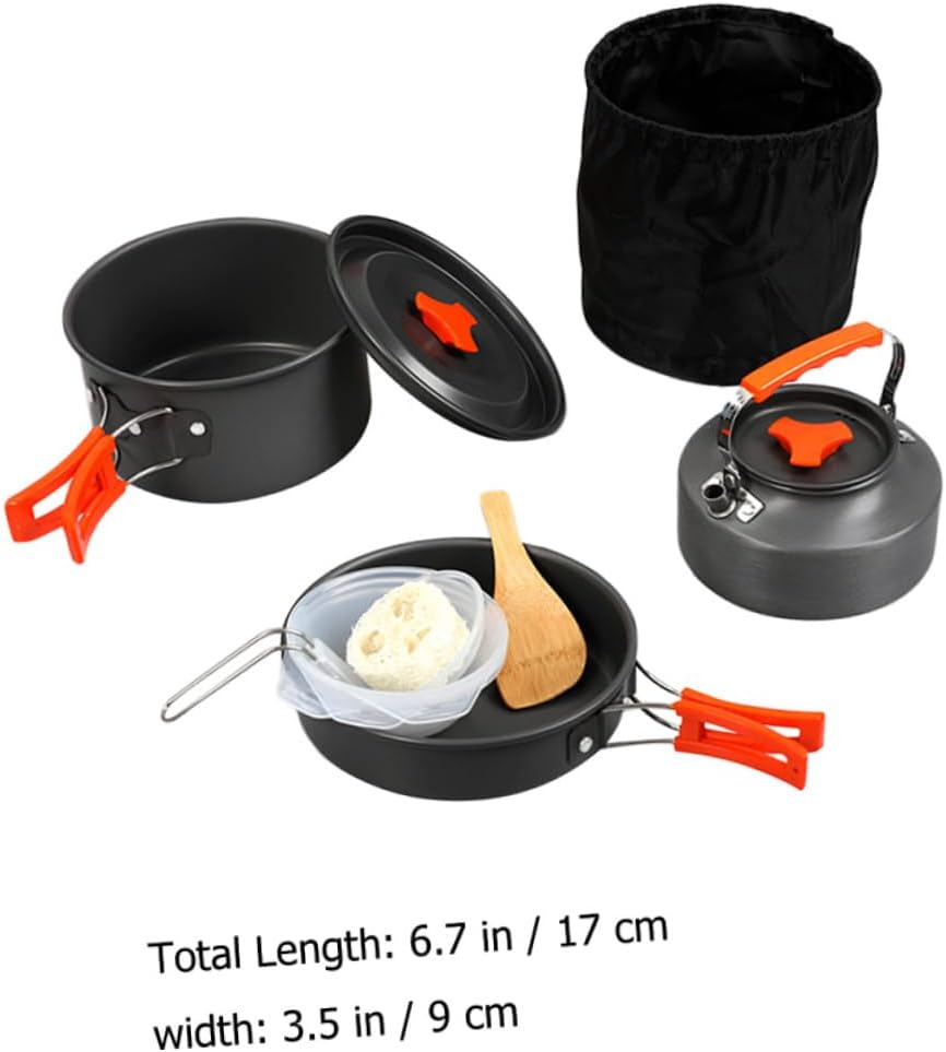 Package Include 1 x Kettle 1 x Frying Pan 1 x Cooking Pan 3 x Plastic Bowls 1 x Spoon 1 x Shovel 1 x Loofah Cleaner 1 x Storage Bag Characteristics - Material: Aluminum, Plastic camping cooking pot - Size: About 17.00X17.00X9.00cm/6.68X6.68X3.54inch camping kettle - Color: Orange camping cooking accessories - Suitable for both outdoor and home use, it is not only for camping but also for mountaineering, fishing and barbecue camping utensil. - It's easy to clean, using these, it can give you a wonderful camping experience campfire cooking equipment. - With all the necessary items in the kitchen, you can easily enjoy cooking outdoors camping cooking pan. - The cookware forms simple and convenient design to save space and facilitate carrying out picnic cooking pan. - Adopted superior and , it will serve you outdoor cooking pot.Goods Informationcamping cooking utensils A complete and durable cookware for camping, hiking, backpacking, picnic, day trips, family parties, lightweight and portable.camping tool want to have some camping cookware? Then, our camping cookware is carefully prepared for you