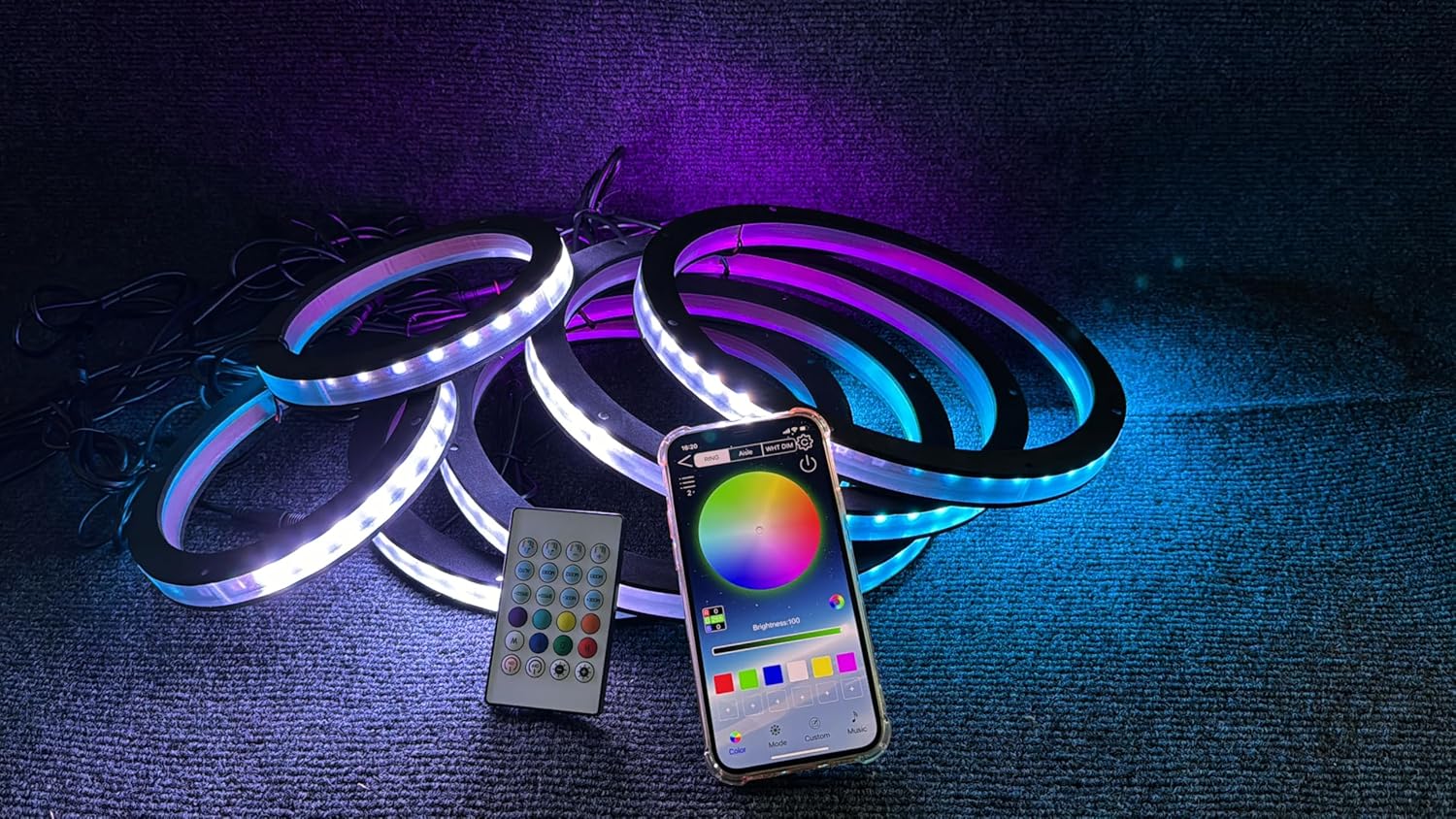 | BuiltIn Media | 1PCS - Remote, 1pc Bluetooth Controller Box + splitters, 6pcs Speaker Rings Lights |