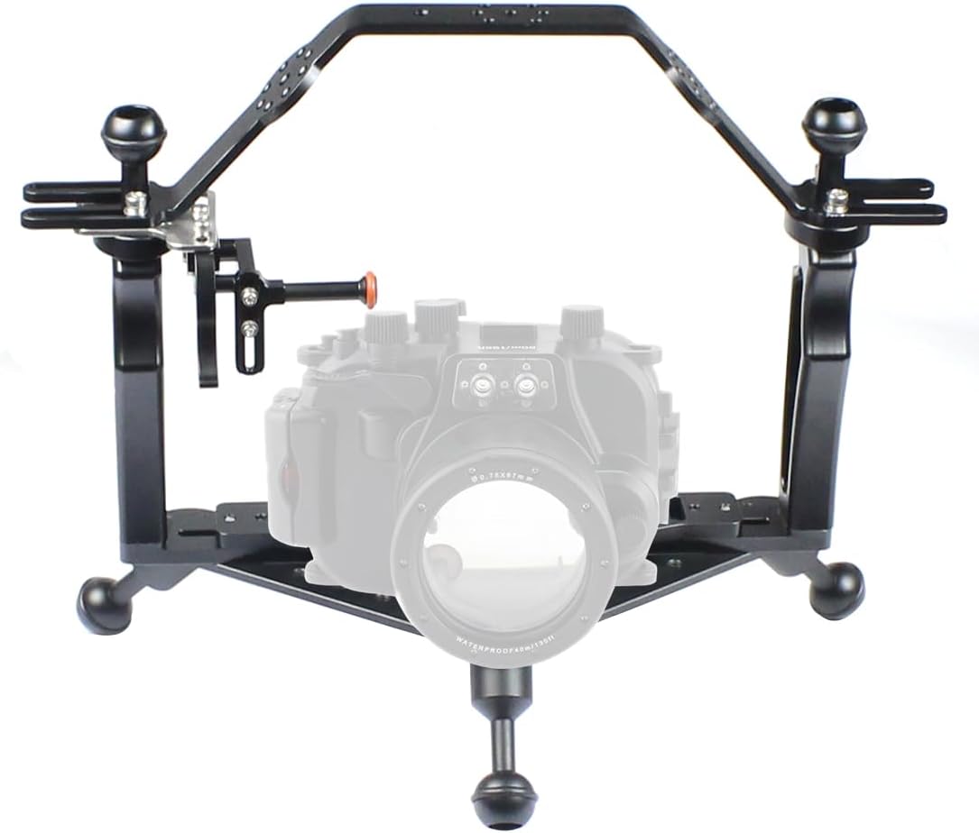 This tool is designed for underwater photographers. It perfectly fits the entire HERO series, Osmo Action, ONE R, and other action cameras. Ergonomic dual-hand grip design: Significantly enhances underwater Search Terms stability, effectively counteracts shaking, and delivers steady handheld footage. The mount features standard M5 and 1/4"expansion holes, allowing you to: Easily attach an adjustable shutter extension rod Quickly attach lighting or microphones via the M5 ball joint. Buoyancy arms in multiple sizes (40/60/80mm diameter) provide buoyancy for lighting equipment, enabling precise lighting placement. The handle facilitates surface transport and seamless switching to low-angle photography.