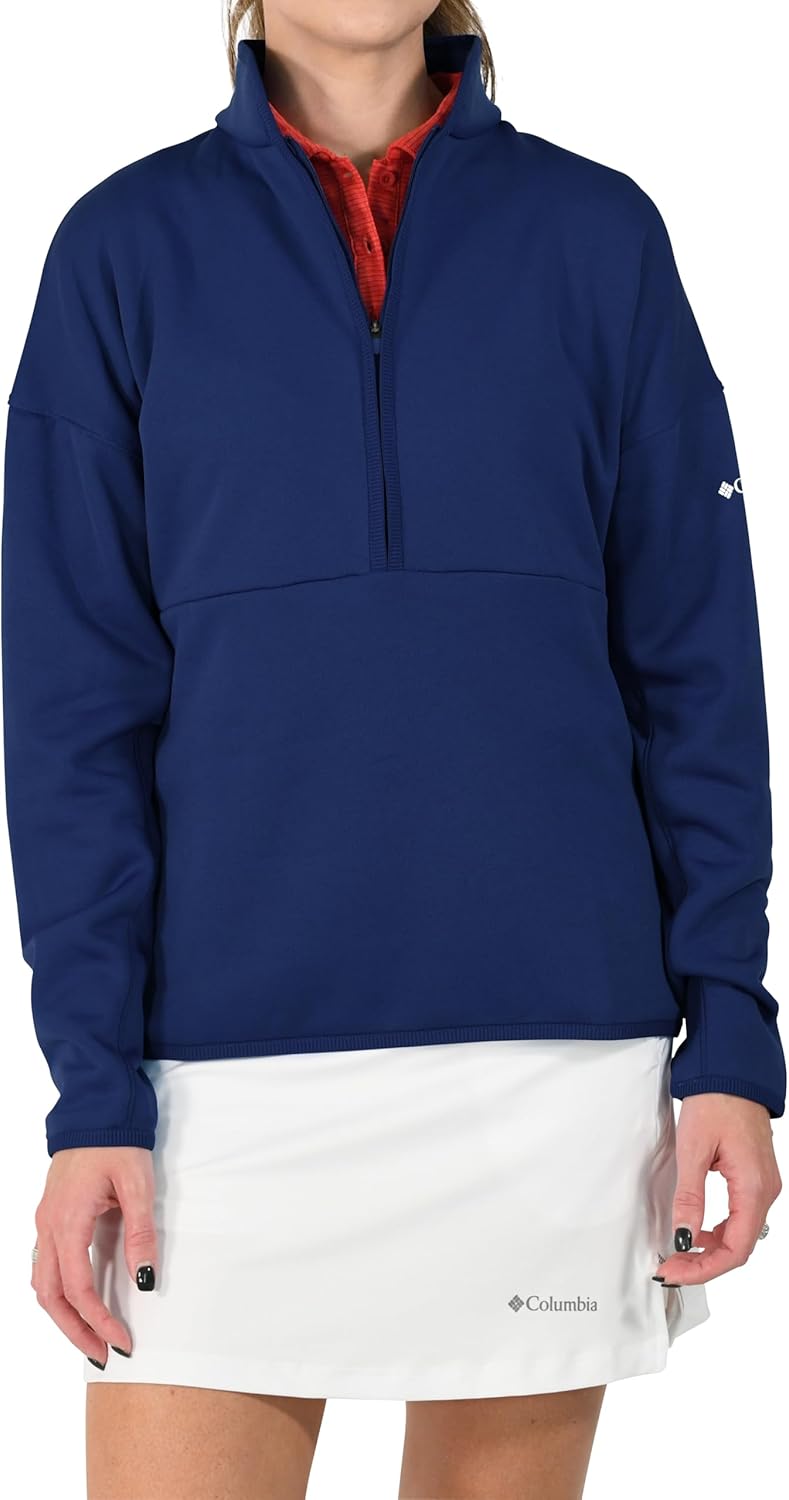 The Columbia Golf Women's Go For It Pullover combines comfort, performance, and style for your best game on the course. This quarter-zip pullover features OMNI-WICK technology, which quickly wicks away moisture to keep you dry and comfortable throughout your play. With OMNI-SHADE UPF 30 sun protection, it offers essential defense against harmful UV rays. The lightweight fleece lining provides warmth without bulk, making it perfect for cooler days. Finished with ribbed trim on the collar and cuffs, this pullover ensures a snug and stylish fit. Whether you're layering up or wearing it solo, the Go For It Pullover delivers both performance and style for any golf outing.