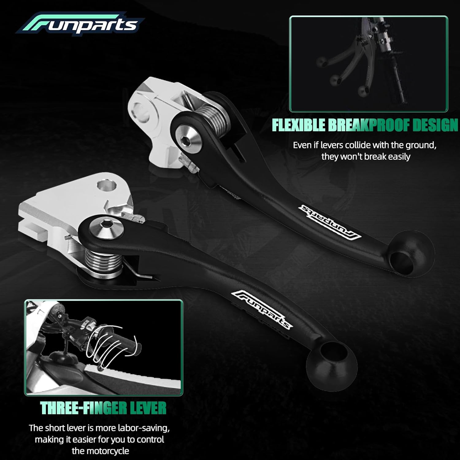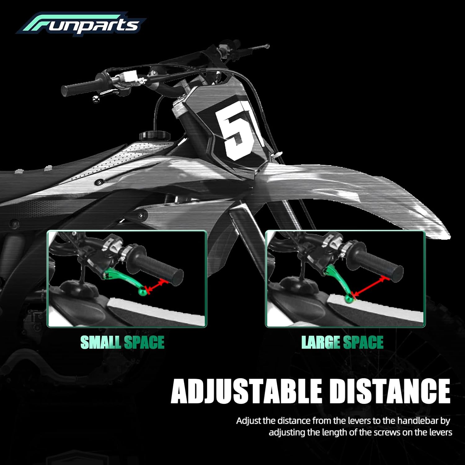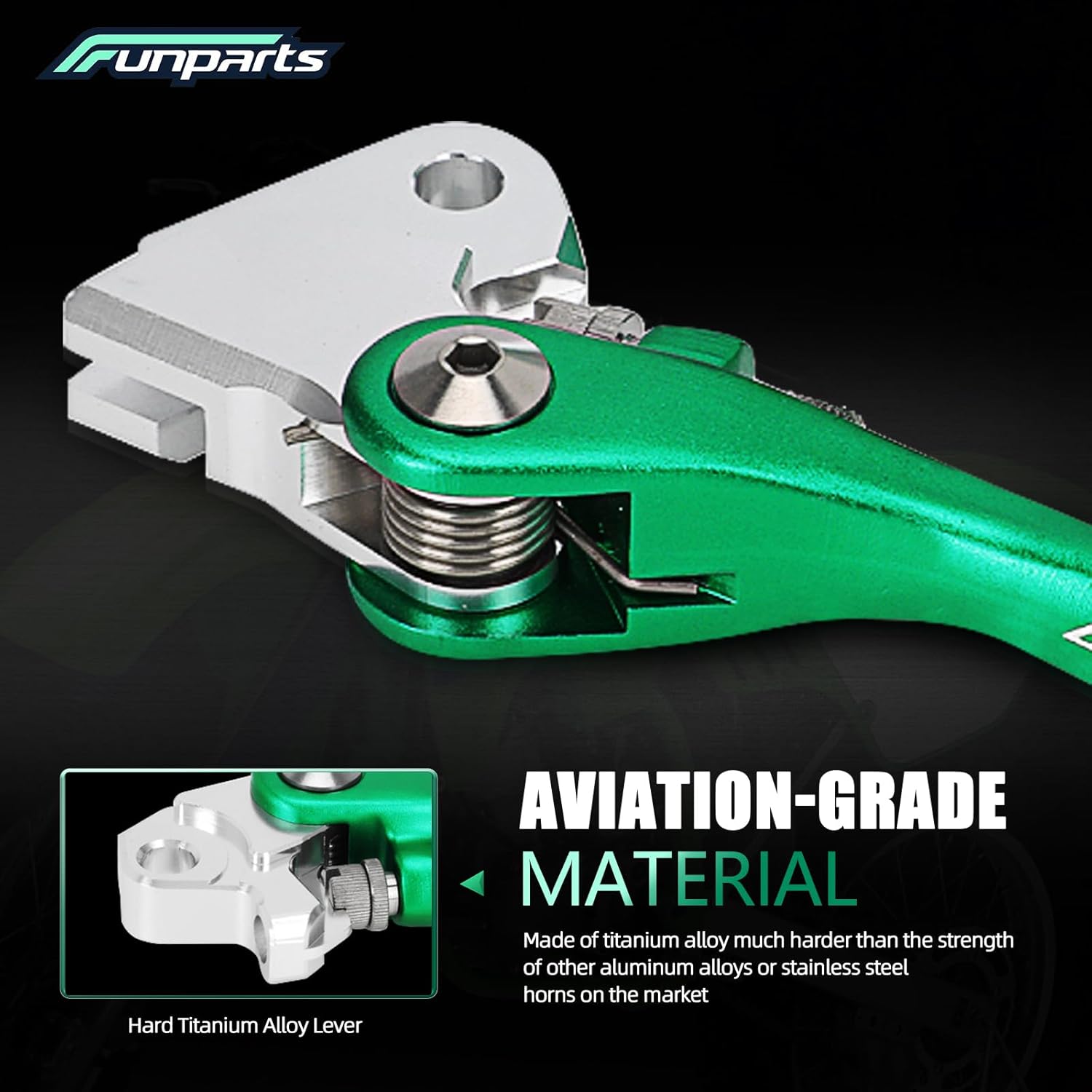 Fitment: For KX250F 2013-2018 For KX450F 2013-2018 For KX250 2019-2020 Features: The Levers Are Made Of Lasting Aluminum For Extreme Strength Automatic lever position restoration provides quick recovery from the crash Ultra precision machine cut for super light weight construction, high precision and quality. Direct replacement for stock levers. No modification! The horn handle adopts a forging process in order to increase the density and achieve a strong hardness, in order to allow the rider to have a better riding feel. Very Smooth Movement Hard anodized finish Easy Installation Specification: Color: Green/Black Material: Forging aluminum Titanium alloy Package Includes: 1 * Brake Lever And 1 * Clutch Lever Instruction of Installation is NOT Included