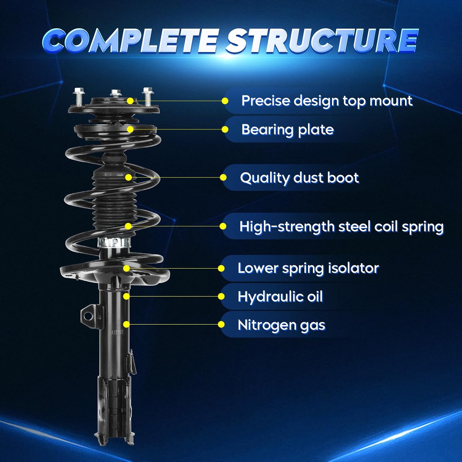 About Us:We are founded by a professional automotive parts technology team, providing customers with various types of automotive parts and accessories with the highest quality products. Each product is produced by professional manufacturers and strictly complies with regulations, providing car enthusiasts with a safer, happier, and more passionate driving experience.Compatible with: --Compatible with Toyota Corolla 2014-2018 Exclude Sport Suspension--Compatible with Toyota Corolla 1.8L 2019 Exclude Sport SuspensionReplace for Part Number: Replace 172989 172990Kit Includes:--1x front left strut shock assembly with coil spring--1x front right strut shock assembly with coil springProduct Design:--Manufactured with high-quality steel, featuring a superior tube and weld design to deliver structural integrity and durability--Designed with inflatable shock absorbersProduct Features:--The surface is coated with an anti-corrosion coating to improve corrosion resistance and oxidation resistance--Greater damping for greater work reliabilityWarm Note: Please check your vehicle model carefully before purchasing.