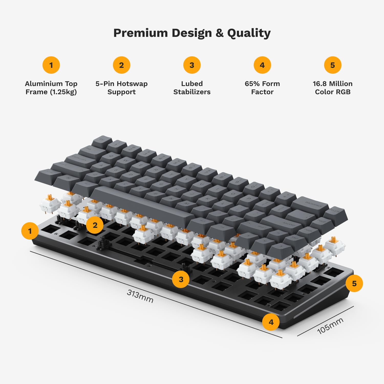 | BuiltIn Media | GMMK 2 Compact (65%) Barebone Frame, 2M Black Braided USB-C Cable, Switch Puller, Keycap puller, 1 x Novelty ESC Key |