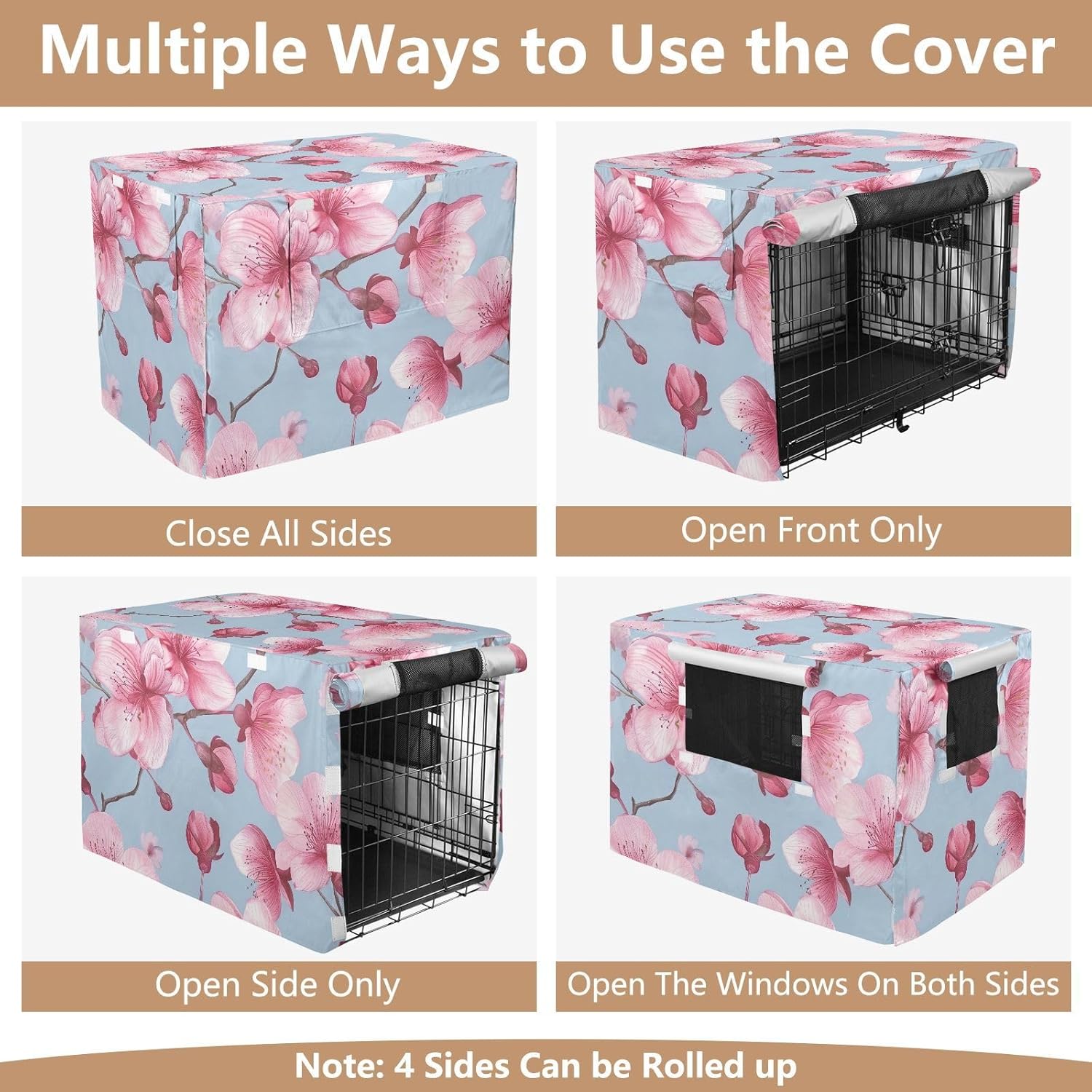 High-Quality Material – Crafted from 600D silver-coated oxford fabric, this water-resistant dog crate cover offers weather-resistant protection against rain, wind, and sunlight. It helps to keep your pet safe and comfortable, ensuring the crate remains in good condition.Fast and Easy Setup – The fastening system allows for a quick and straightforward installation process, making it ideal for pet owners who need an efficient solution for their dog crate cover.Breathable Design – With mesh windows on all sides, this pet kennel cover ensures consistent airflow, which helps keep your dog cool and comfortable while inside the crate. The breathable mesh also provides privacy and reduces stress.Sturdy and Wind-Resistant – Four tie-down straps securely fasten the cover to the crate, ensuring it remains stable even in windy conditions. This feature prevents the cover from being blown off or moved out of place.Convenient for Travel and Home – This versatile dog kennel cover is designed for both home and travel use, providing a reliable solution for your pet's needs. Whether you're indoors or on the move, it offers excellent protection for your dog’s crate.