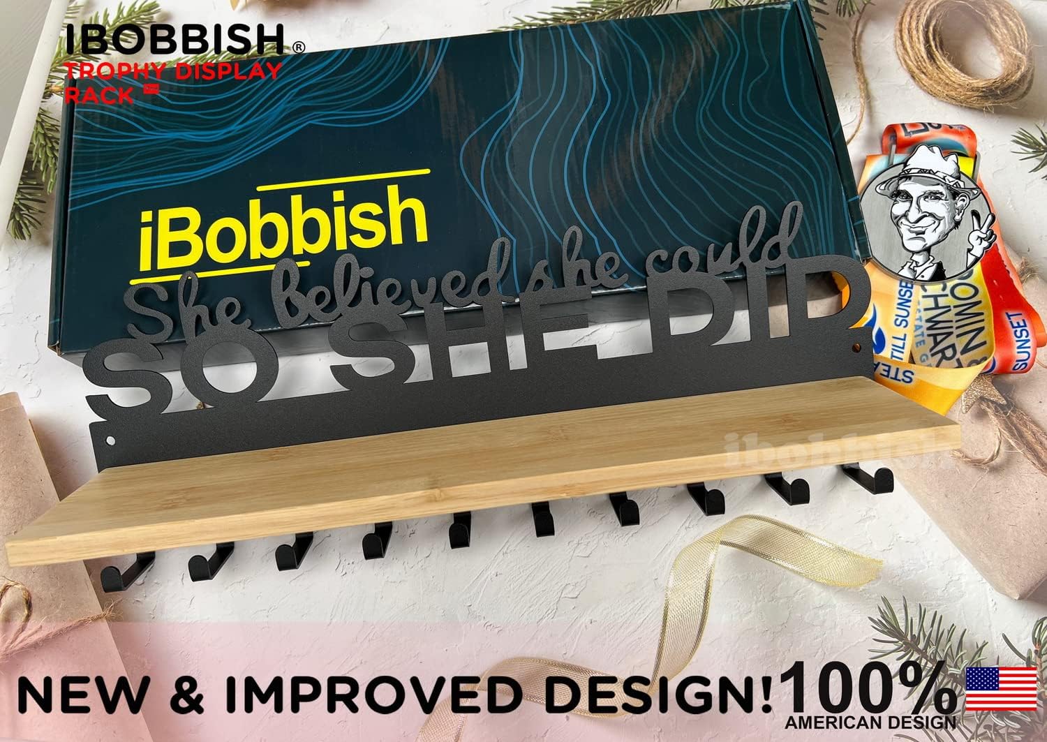 XFUNPLUS brings you luxurious designed high quality heavy duty non-bent Medal hangers at an affordable price. These supreme quality trophy medal hangers are combined with thicker and stronger design and work better than those common trophy medal hangers. These premium medal hangers, coming with all screws,anchors, are heavy duty, non-bent with highest level material sturdy metal. The slim and sleek design can maximize your wall space. These space saving trophy medal hangers from XFUNPLUS help you saving more than half the wall space compared to wood or acrylic hangers. WHY the XFUNPLUS trophy Medal Hanger is the BEST CHOICE in Medal Wall Display? These trophy medal hangers measure 14.2"x5.2" x0.125" Those features make XFUNPLUS hangers much more outstanding: Top quality material: Sturdy metal with professional black color finishingUltra slim & lightweight design for hanging on the wallNon bent and luxurious metal materialHolds heavy medals easilyCan hold large capacity from 22lbs-33lbs(10kgs to 15kgs) Medals hold large capacity from 40 to 60pcsSave the hundred of Pinholes in the walls 4 hanging bars allow you hanging more medals,and another tiny goods,keyring,sunglasses¡ The high-grade sturdy steel last medal hanger lifetime,unlike regular hangersThe set makes a great gift! With this pack Medal hangers from XFUNPLUS, you can save your walls and replace all your regular hangers at once for maximized wall space. Those heavy duty non-bent sturdy trophy medal hangers with 10 hanging hooks,wooden shelf with gift box is perfect for friends,colleague,lover