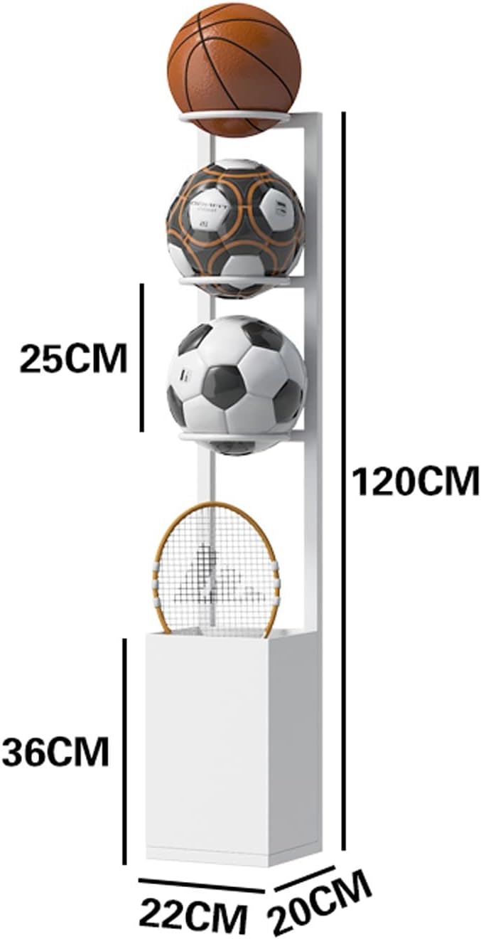 Heavy Duty Exercise Ball Pilates Balls Storage Organizer:Introducing our premium freestanding ball storage rack, expertly crafted from durable carbon steel. This robust material ensures exceptional strength and resistance to bending, scratching, and fading, making it an ideal choice for both home and commercial use. With its sleek black, gold, and white color options, this ball stand not only serves a functional purpose but also enhances the aesthetic appeal of your space.Whether you’re organizing sports equipment in a gym, keeping play areas tidy, or simply showcasing your favorite balls, this versatile storage solution is designed to meet your needs. Its spacious design accommodates multiple sizes, ensuring your balls are always within reach and ready for action.Specifications:- Material: Carbon Steel- Color Options: Black, Gold, White- Size Options: 90*22*20cm, 120*22*20cmPackage Includes:- 1 x Ball Storage RackElevate your organization with our freestanding ball storage rack, the perfect blend of style and functionality for any environment. Experience the convenience and durability that comes with quality craftsmanship.